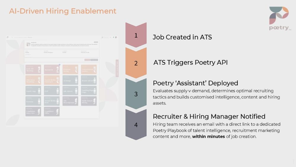 - As soon as a requisition is opened in your ATS, it triggers the Poetry API.